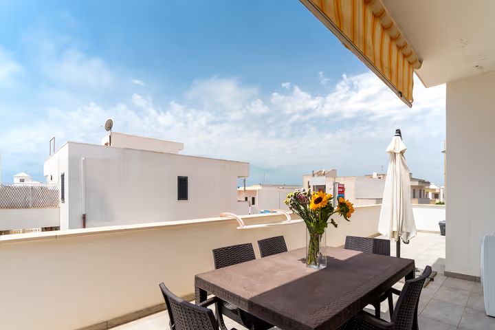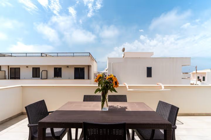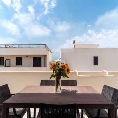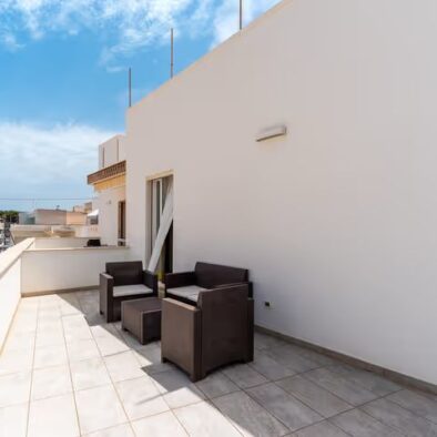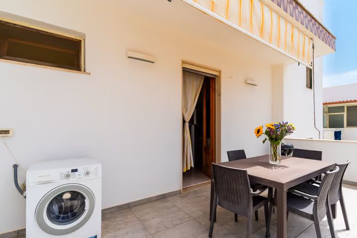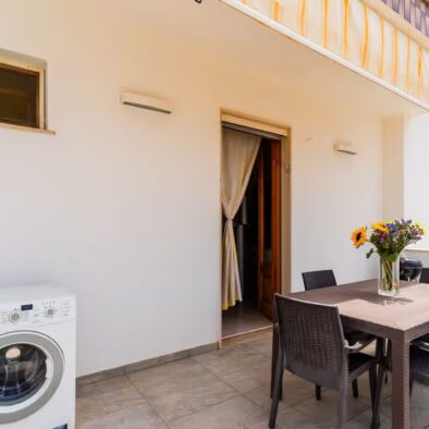 Il Trilocale Quadrifoglio è un ampio e confortevole appartamento situato a circa 100 metri dal mare, ideale per ospitare fino a sei persone. Grazie alla posizione centralissima, rappresenta una soluzione perfetta per famiglie o gruppi di amici che desiderano soggiornare a Lido Marini senza dover utilizzare l’auto, con ristoranti, negozi e supermercati facilmente raggiungibili a piedi. L’appartamento è composto da una luminosa zona giorno con angolo cottura attrezzato e divano letto, due camere matrimoniali separate e un bagno funzionale e ben rifinito. La distribuzione degli ambienti garantisce spazio, comfort e praticità, rendendo il soggiorno piacevole anche per gruppi numerosi. Uno dei principali punti di forza del Trilocale Quadrifoglio è la presenza di due spazi esterni attrezzati, pensati per vivere appieno l’estate. Gli ambienti all’aperto sono arredati con barbecue, un divanetto con due poltrone in finto rattan e un ampio tavolo con sedie, ideali per pranzare all’aperto, rilassarsi o trascorrere piacevoli momenti in compagnia dopo una giornata di mare. Gli spazi esterni sono inoltre dotati di tenda parasole per garantire comfort e ombreggiatura durante le ore più calde. Al piano terra è presente una comoda doccia esterna, particolarmente utile per lavarsi i piedi e rimuovere la sabbia al rientro dalla spiaggia, evitando di entrare in casa con residui di sabbia. L’alloggio è dotato di TV, aria condizionata, lavatrice, zanzariere, asciugacapelli, fornetto e stoviglie, oltre alla doccia interna, offrendo tutto il necessario per una vacanza comoda e senza pensieri. Il Trilocale Quadrifoglio rappresenta la soluzione ideale per chi cerca una casa vacanza a Lido Marini vicino al mare, spaziosa, funzionale e perfettamente inserita nel cuore della località.